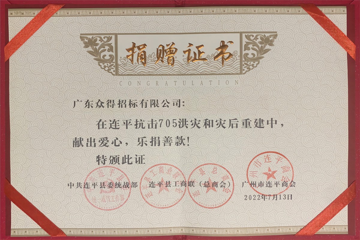 2022.7 向河源市連平縣抗擊705洪災(zāi)和災(zāi)后重建捐款